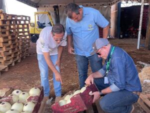Técnicos da Agrodefesa conferem os melões a serem exportados